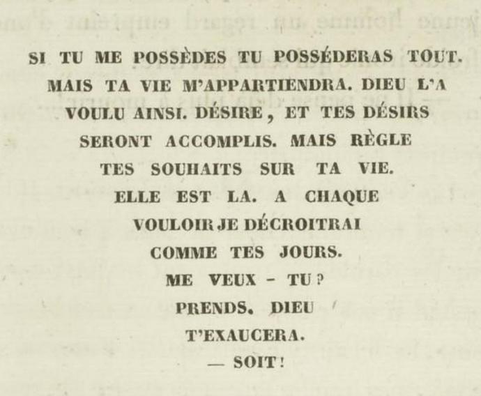 Dans ce récit, le jeune Raphaël de Valentin possède une peau de chagrin dont le pouvoir est d’exaucer ses vœux. Mais chaque désir exaucé fait diminuer la taille de cette peau qui incarne le temps de vie restante du héros. En connaisseur de l’âme humaine, Balzac ne lui offre pas une fin enviable pour avoir trop demandé.