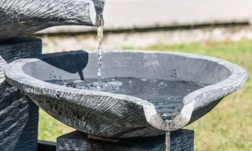 La vasque se remplit par un écoulement d’eau et se vide par débordement.